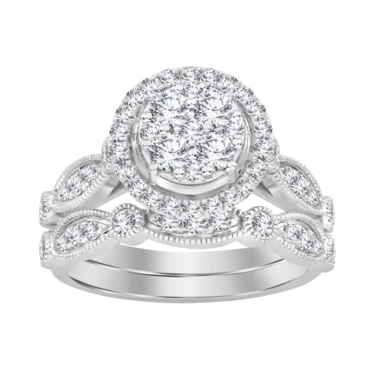 LADIES BRIDAL SET 1.00CT ROUND DIAMOND 14K WHITE GOLD