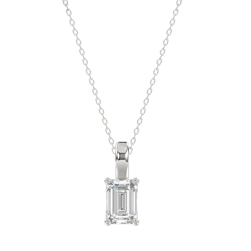 LADIES SOLITAIRE PENDANT WITH CHAIN 1CT EMERALD DIAMOND 14K WHITE GOLD