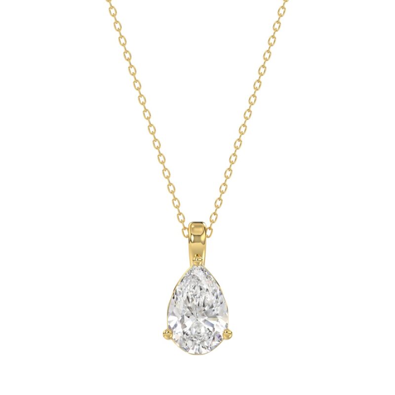 LADIES SOLITAIRE PENDANT WITH CHAIN 1CT PEAR DIAMOND 14K YELLOW GOLD
