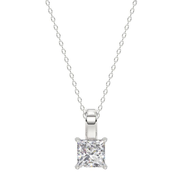 LADIES SOLITAIRE PENDANT WITH CHAIN 1CT PRINCESS DIAMOND 14K WHITE GOLD