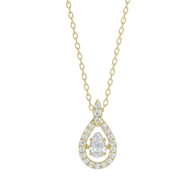 LADIES DANCING DIAMOND PENDANT WITH CHAIN 3/4CT ROUND/PEAR DIAMOND 14K YELLOW GOLD (CENTER STONE PEAR DIAMOND 1/2CT)