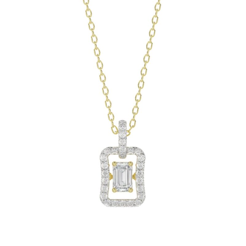 LADIES DANCING DIAMOND PENDANT WITH CHAIN 3/4CT ROUND/EMERALD DIAMOND 14K YELLOW GOLD (CENTER STONE EMERALD DIAMOND 1/2CT)