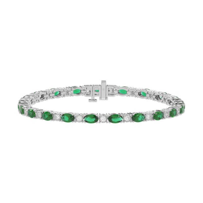 14K WHITE GOLD 5 3/8CT ROUND/EMERALD ROUND DIAMOND LADIES BRACELET (ROUND EMERALD 3CT)