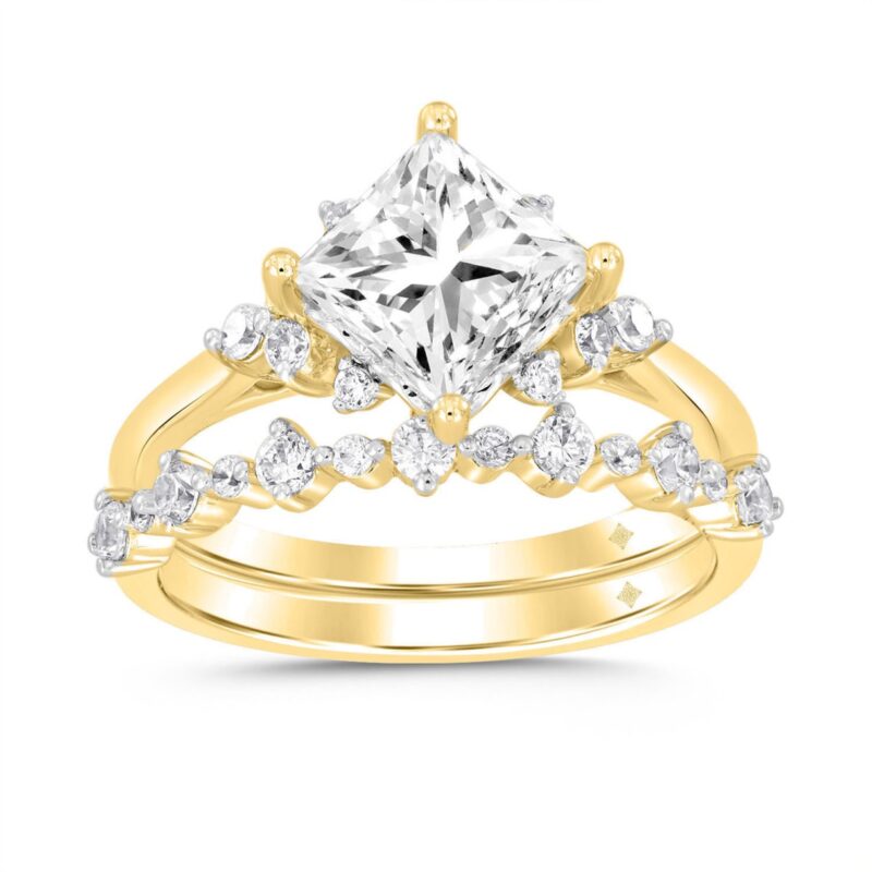 LADIES BRIDAL SET 2 1/2CT ROUND DIAMOND 14K YELLOW GOLD (CENTER STONE PRINCESS DIAMOND 2CT )