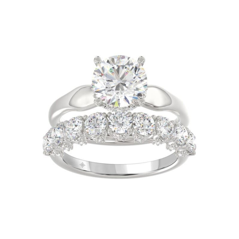 LADIES BRIDAL SET 3 5/8CT ROUND DIAMOND 14K WHITE GOLD (CENTER STONE ROUND DIAMOND 2.00CT)