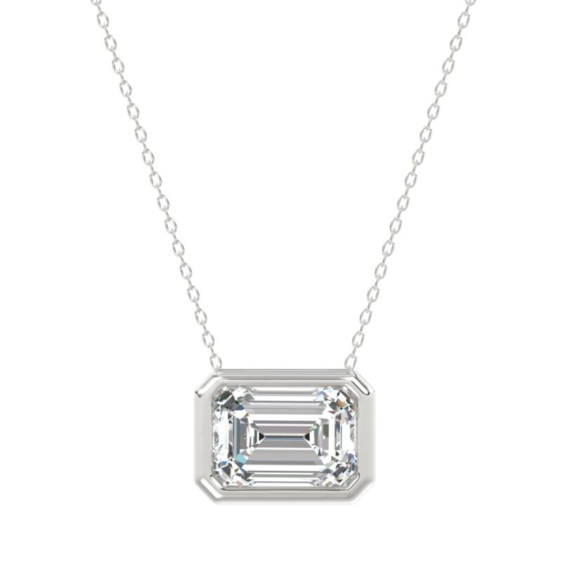LADIES SOLITAIRE PENDANT WITH CHAIN 2CT EMERALD DIAMOND 14K WHITE GOLD