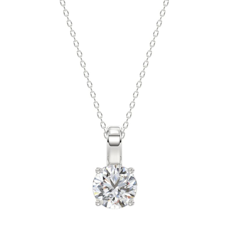 LADIES SOLITAIRE PENDANT WITH CHAIN 1CT ROUND DIAMOND 14K WHITE GOLD (CENTER STONE ROUND DIAMOND 1CT )