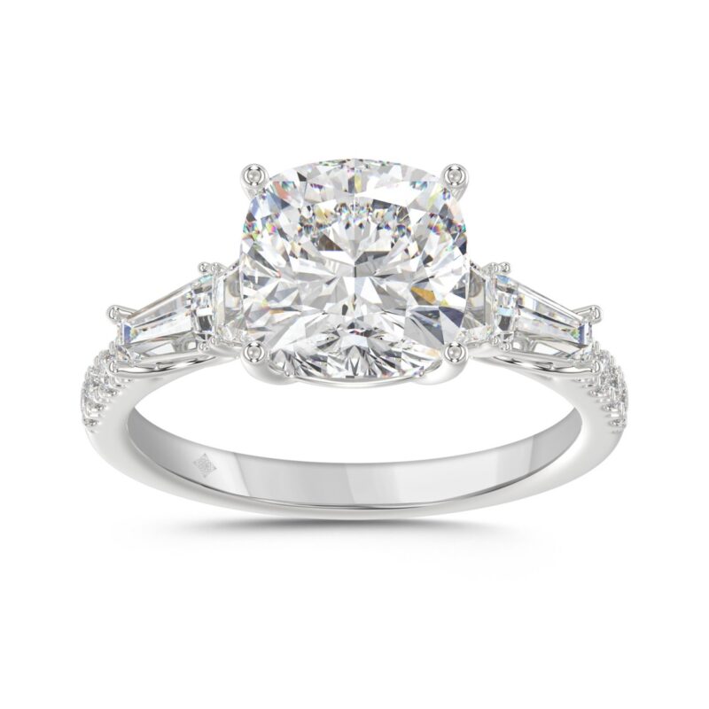 14K WHITE GOLD 4.00CT ROUND/CUSHION/TRAPEZOID/TAPER BAGUETTE DIAMOND LADIES RING