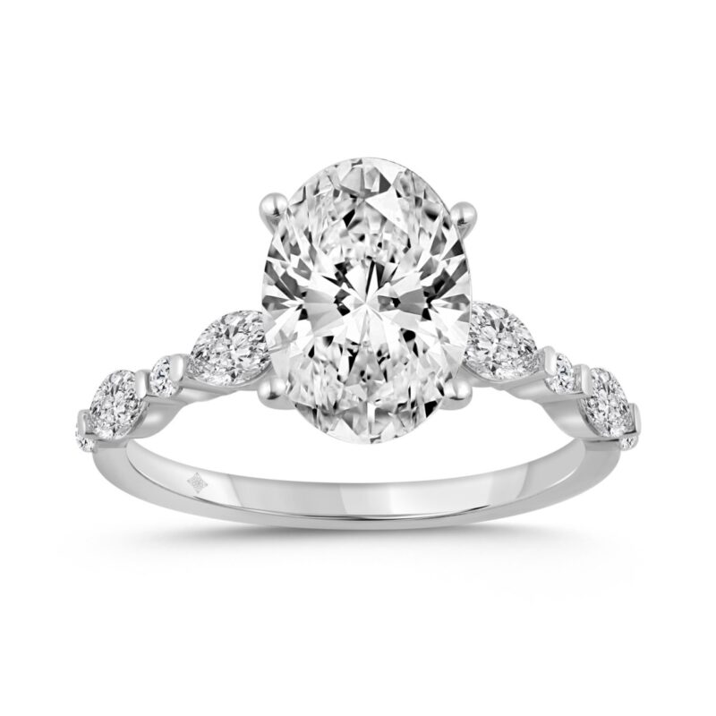 14K WHITE GOLD 4.00CT ROUND/OVAL/MARQUISE DIAMOND LADIES RING (CENTER STONE OVAL DIAMOND 3 1/2CT)