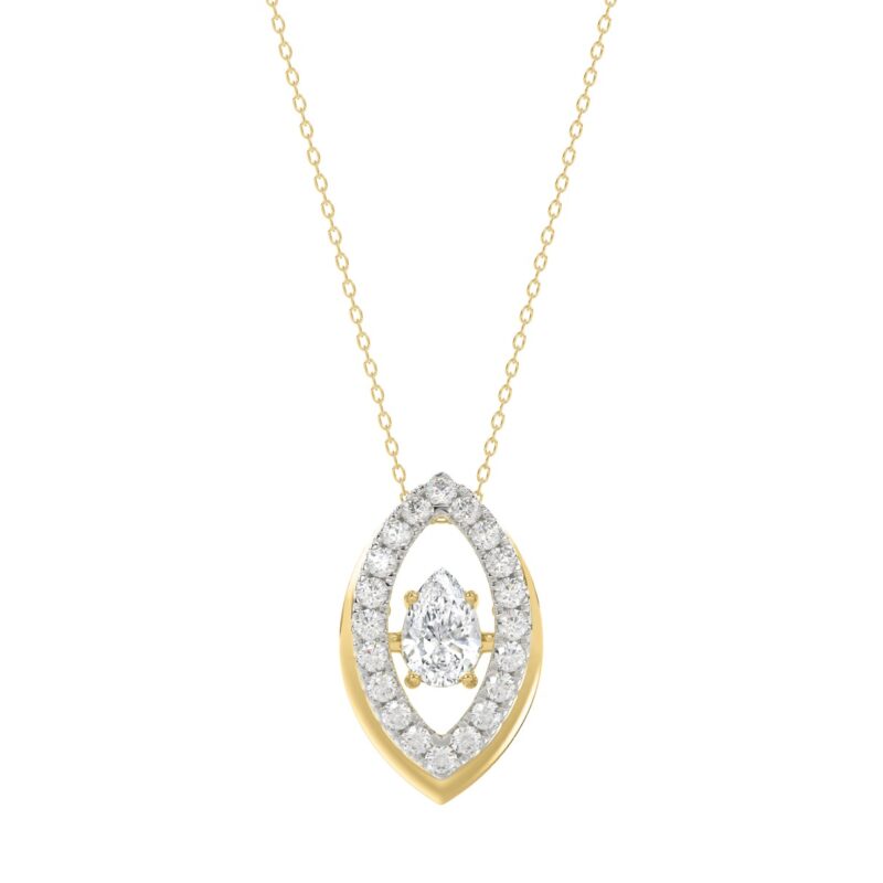 LADIES DANCING DIAMOND PENDANT WITH CHAIN 3/4CT ROUND DIAMOND 14K YELLOW GOLD (CENTER STONE PEAR DIAMOND 1/2CT)