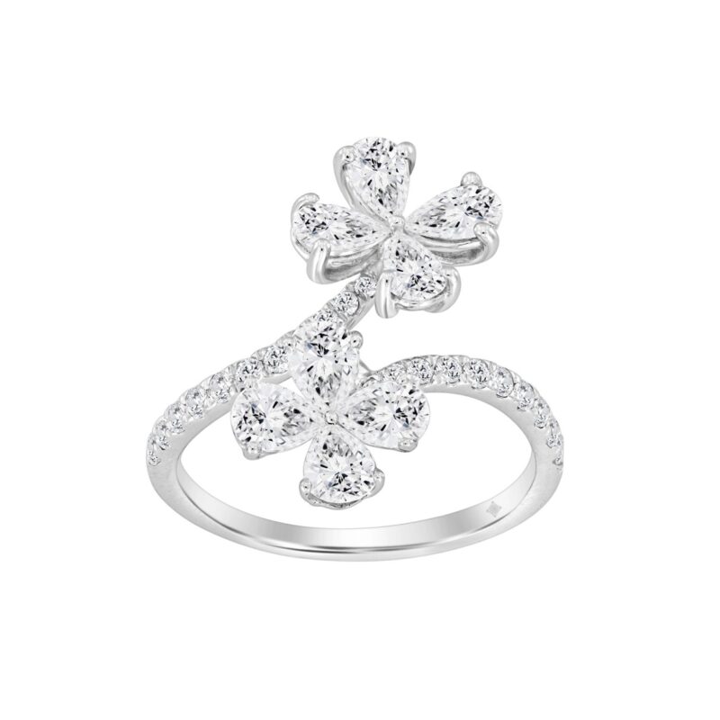 LADIES RING 1 3/4CT ROUND/PEAR DIAMOND 14K WHITE GOLD