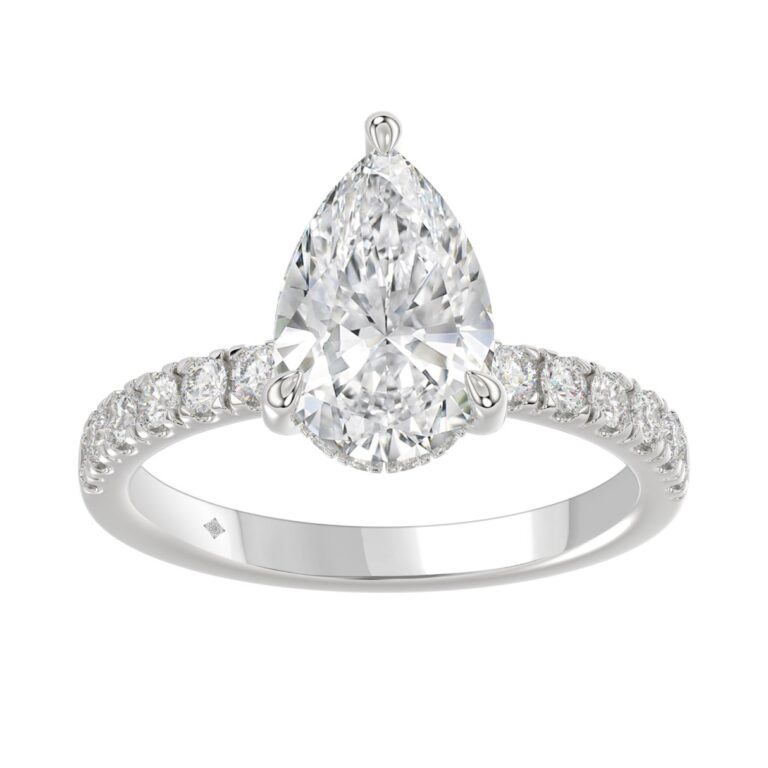 Hidden halo jewelry and Engagement Wedding Rings Jewelry places small diamonds beneath the center stone. Instead of surrounding it openly, the sparkle stays tucked below. This creates a soft glow from the side and underneath. The design feels modern, refined, and slightly unexpected.