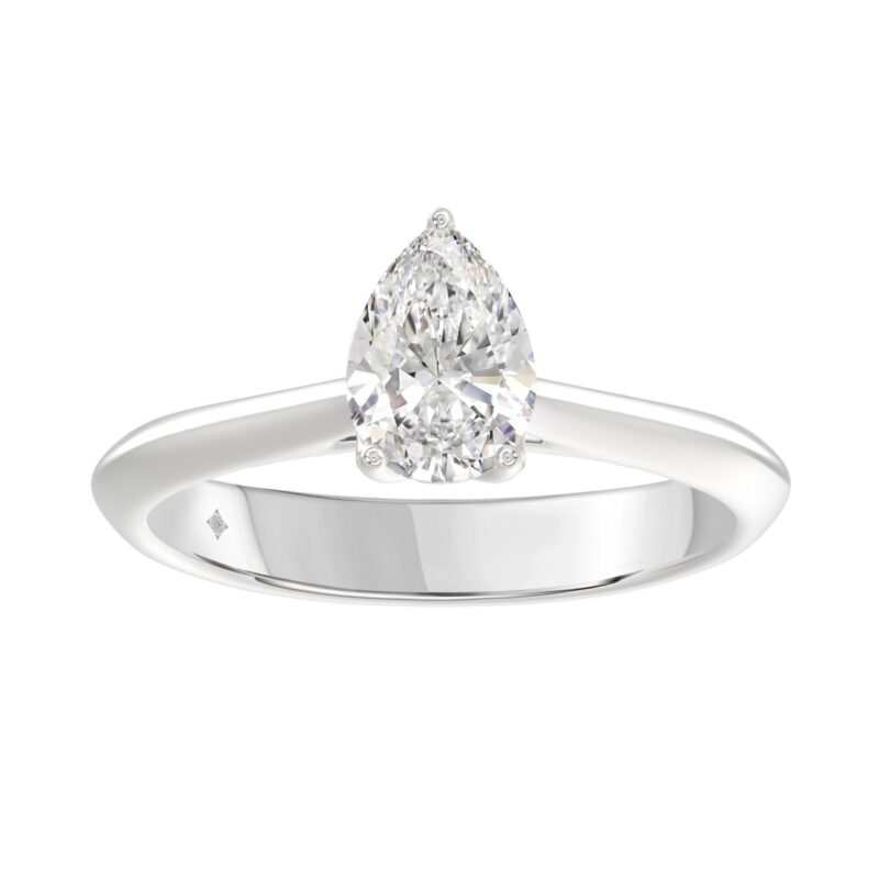 LADIES SOLITAIRE RING 1CT PEAR DIAMOND 14K WHITE GOLD