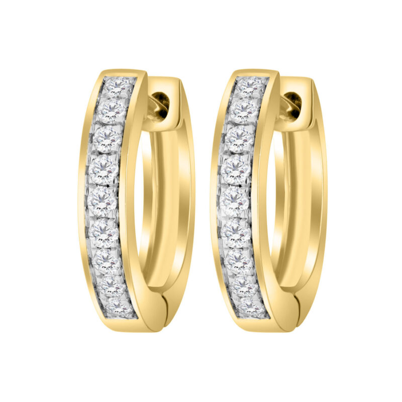 Hoop and huggies earrings of diamonds are a nice touch to any appearance. Diamonds of small size are soft reflectors. During events and evenings, women use diamond hoop earrings. They are not heavy and dirty. Diamond hoops are suitable in gold or white gold.