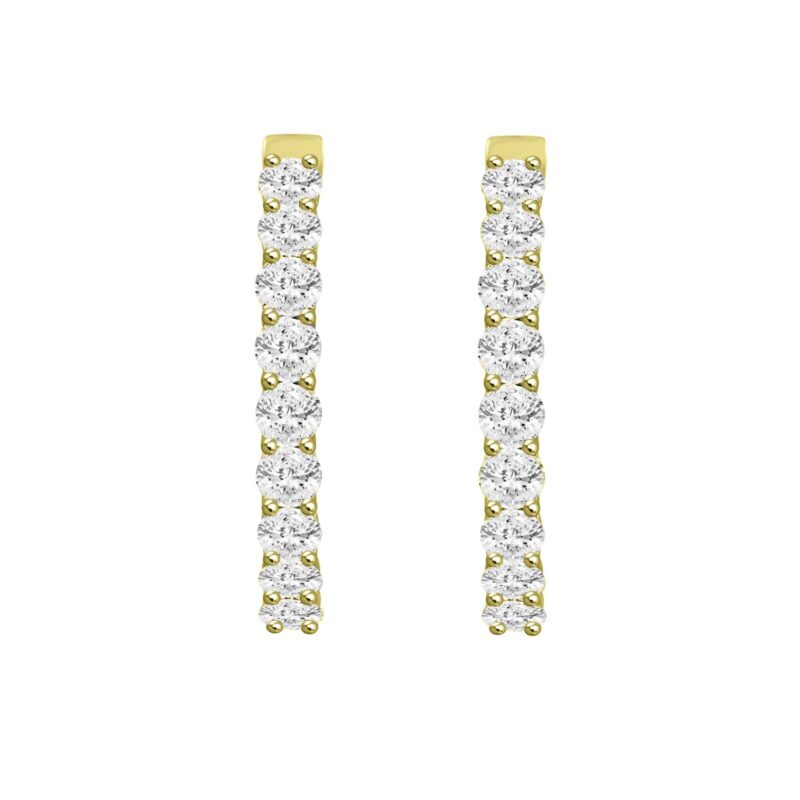 LADIES HOOP EARRINGS 11CT ROUND DIAMOND 14K YELLOW GOLD