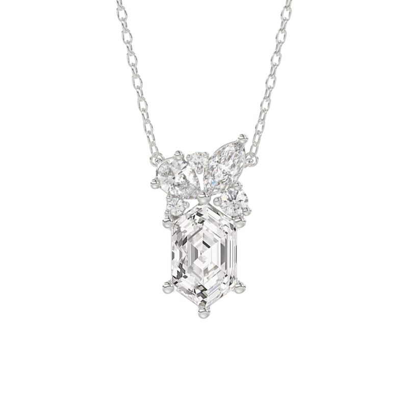 14K WHITE GOLD 1.00CT ROUND/MARQUISE/PEAR/LONG HEXAGON STEP CUT LADIES NECKLACE