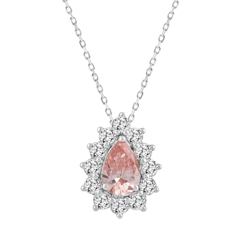 ETERNAL BLUSH COLLECTION LADIES PENDANT 2 1/2CT ROUND/PEAR DIAMOND 14K WHITE/ROSE GOLD (CENTER STONE PINK PEAR DIAMOND 1 1/2CT)