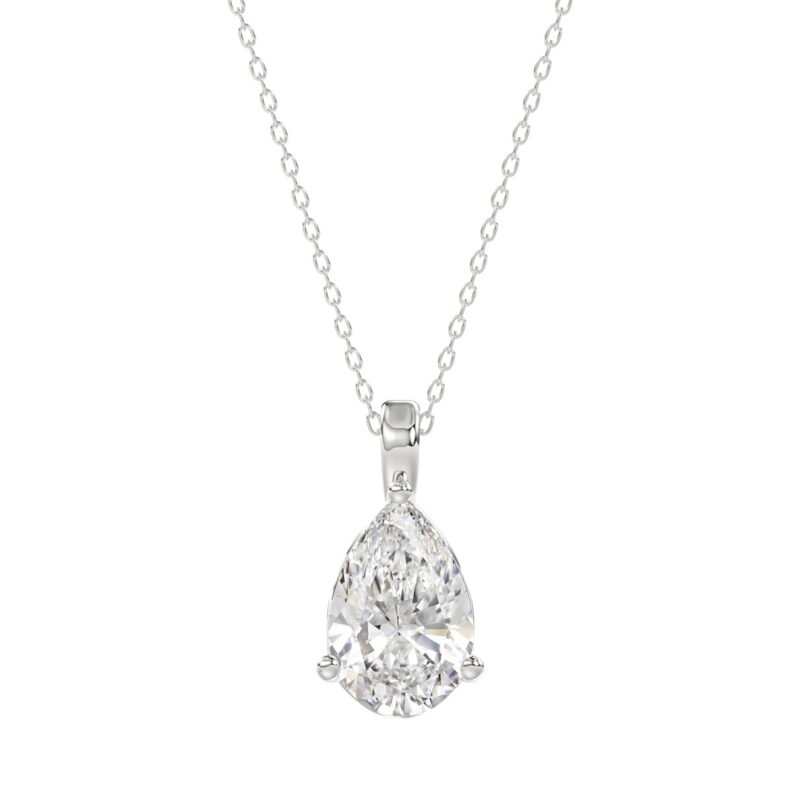 LADIES SOLITAIRE PENDANT 4CT PEAR DIAMOND 14K WHITE GOLD