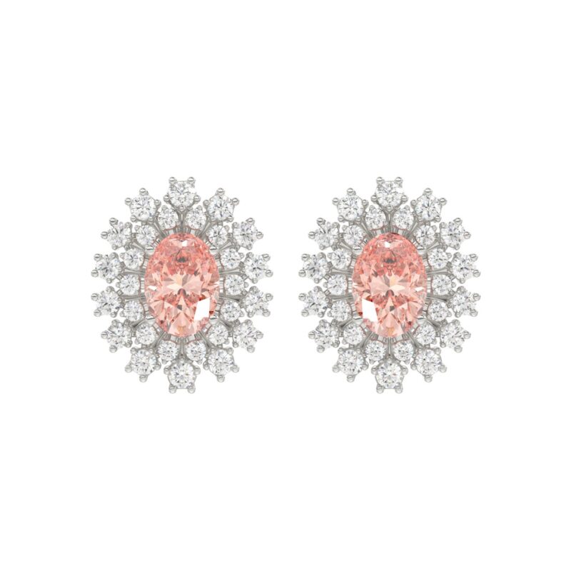 14K WHITE GOLD CRAFTED WITH 18K YELLOW GOLD BACK PLATE 1 1/2CT ROUND/PINK OVAL DIAMOND LADIES EARRINGS