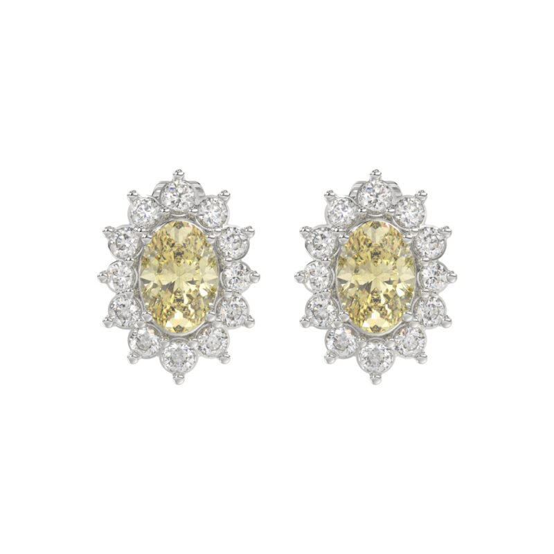 14K WHITE GOLD CRAFTED WITH 18K YELLOW GOLD BACK PLATE 1 1/2CT ROUND/YELLOW OVAL DIAMOND LADIES EARRINGS