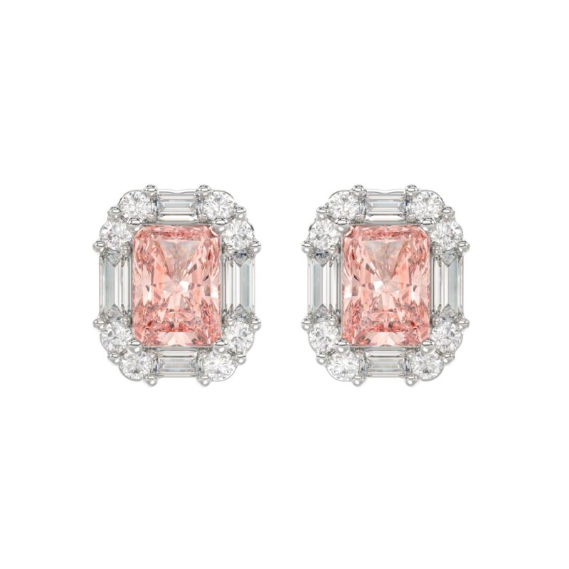 14K WHITE GOLD CRAFTED WITH 18K YELLOW GOLD BACK PLATE 1 1/3CT ROUND/PINK RADIANT/BAGUETTE DIAMOND LADIES EARRINGS