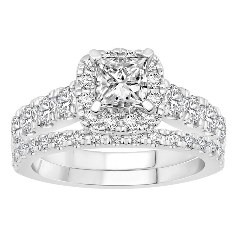 LADIES BRIDAL SET 1.60CT ROUND DIAMOND 14K WHITE GOLD (SI QUALITY) (CENTER STONE 0.75CT PRINCESS DIAMOND)