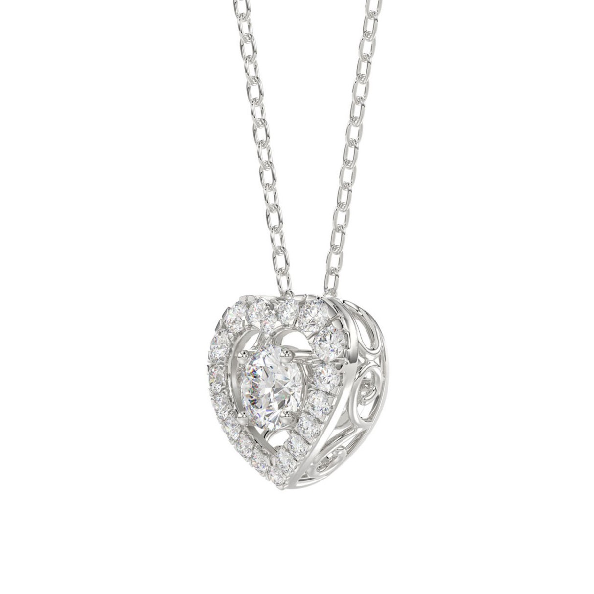 10K WHITE GOLD 3/4CT ROUND DIAMOND LADIES PENDANT WITH CHAIN (CENTER STONE ROUND DIAMOND 1/2CT)