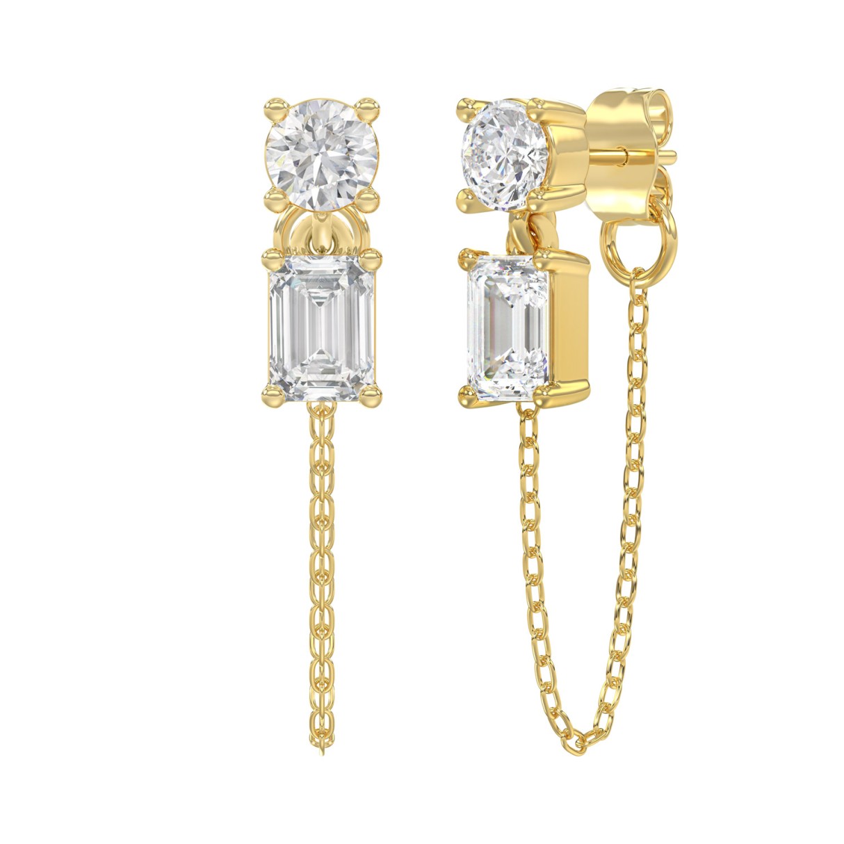 10K Yellow Gold 3/4CT Emerald/Round cut Diamond Elegant Ladies Earring (Color F-G -Clarity VS1/VS2)