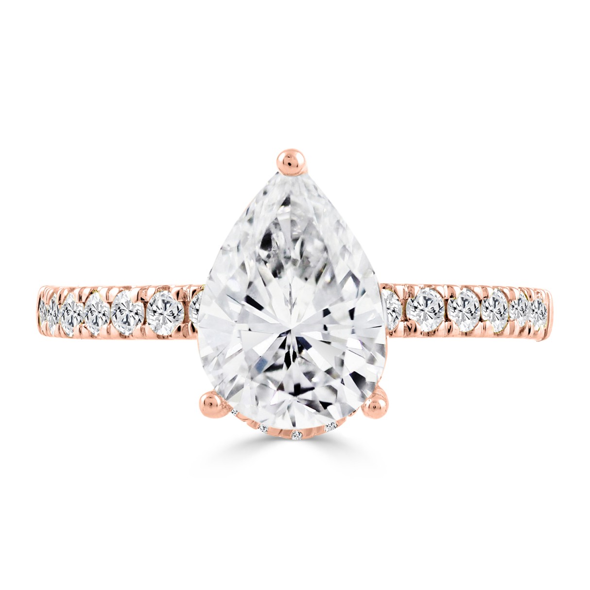 14K ROSE GOLD 1/2CT ROUND/PEAR DIAMOND LADIES RING (CENTER STONE PEAR DIAMOND 2CT)