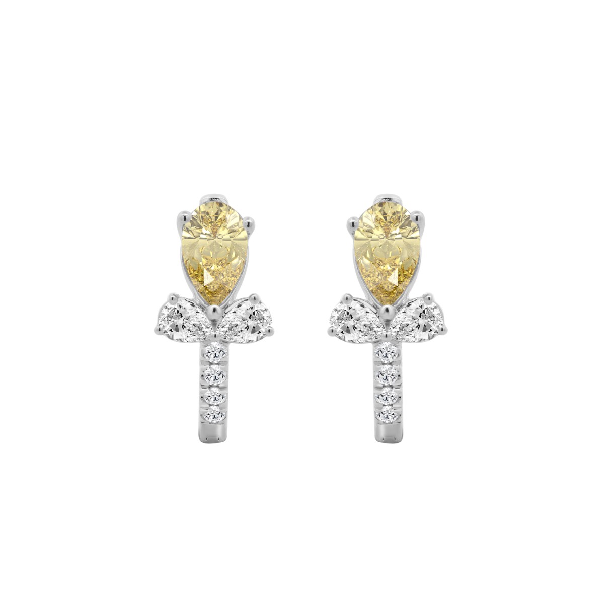 14K WHITE GOLD 1 1/2CT ROUND/PEAR/YELLOW PEAR DIAMOND LADIES EARRING