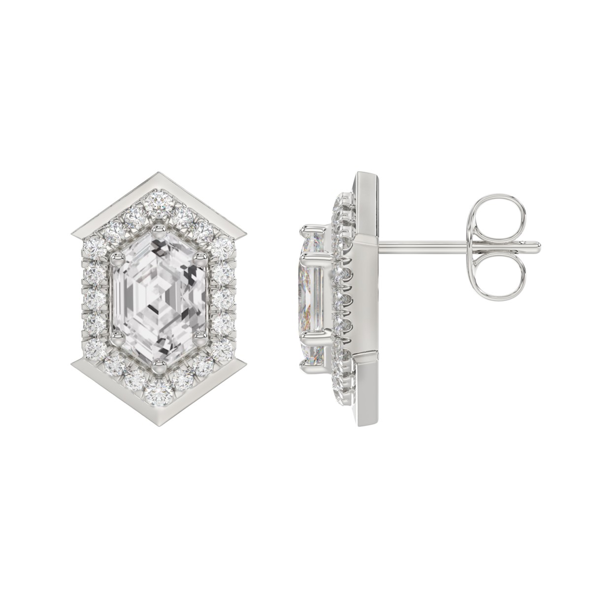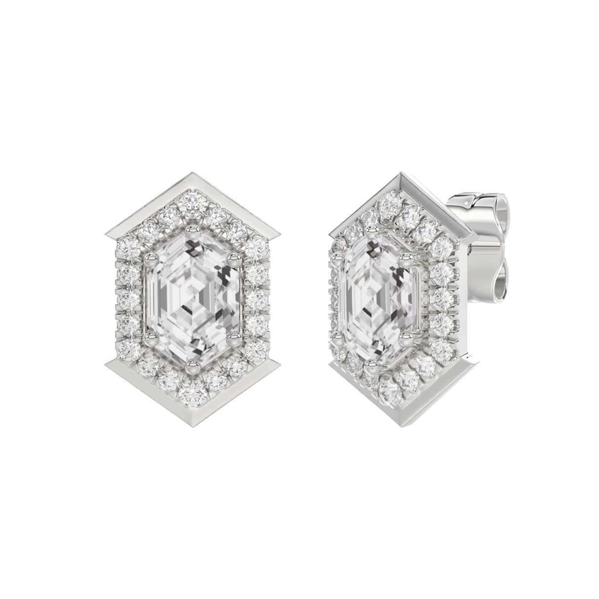14K WHITE GOLD 1 1/4CT ROUND/HEXAGON DIAMOND LADIES EARRINGS