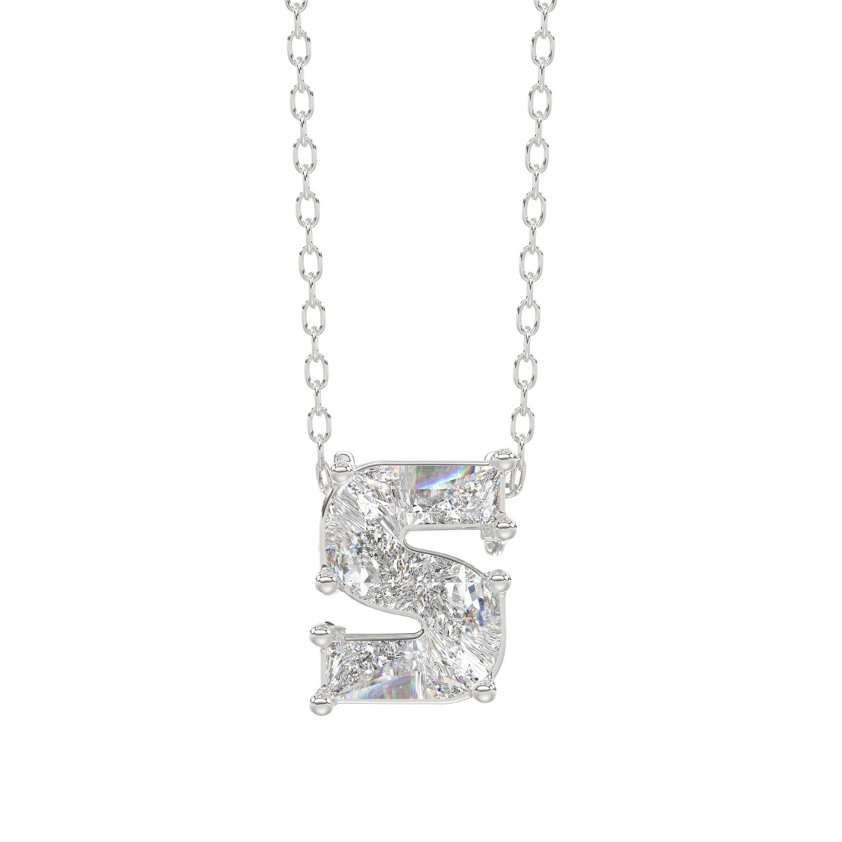 14K WHITE GOLD 1 3/4CT FANCY CUT ALPHABET DIAMOND LADIES PENDANT WITH CHAIN