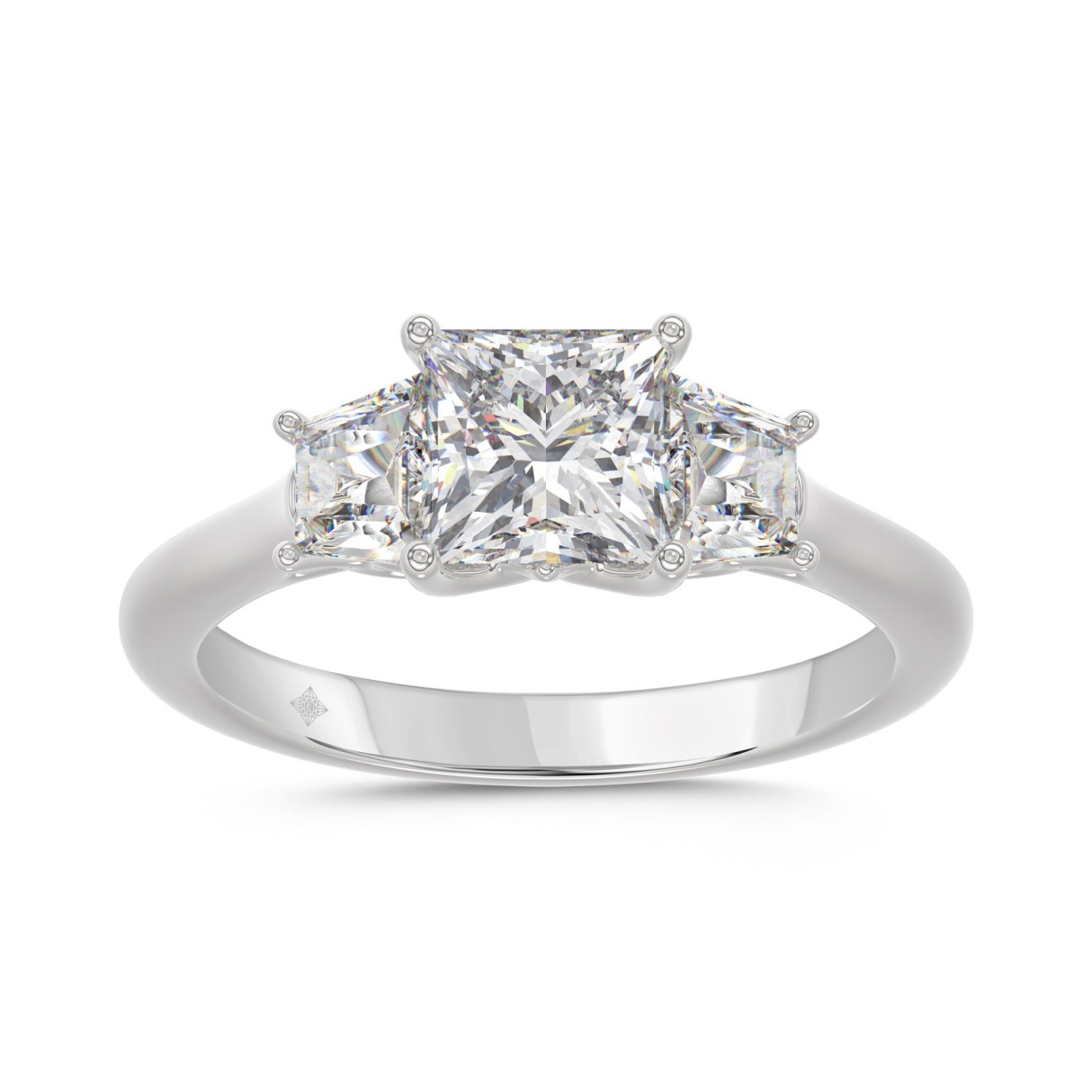 14K WHITE GOLD 1 3/4CT PRINCESS/TRAPEZOID DIAMOND LADIES RING (CENTER STONE PRINCESS DIAMOND 1 1/4CT)