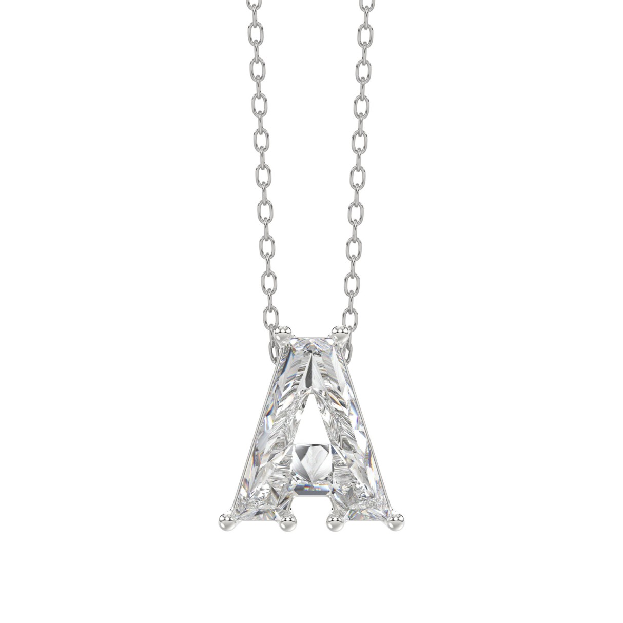 14K WHITE GOLD 1 5/8CT FANCY CUT ALPHABET DIAMOND LADIES PENDANT WITH CHAIN