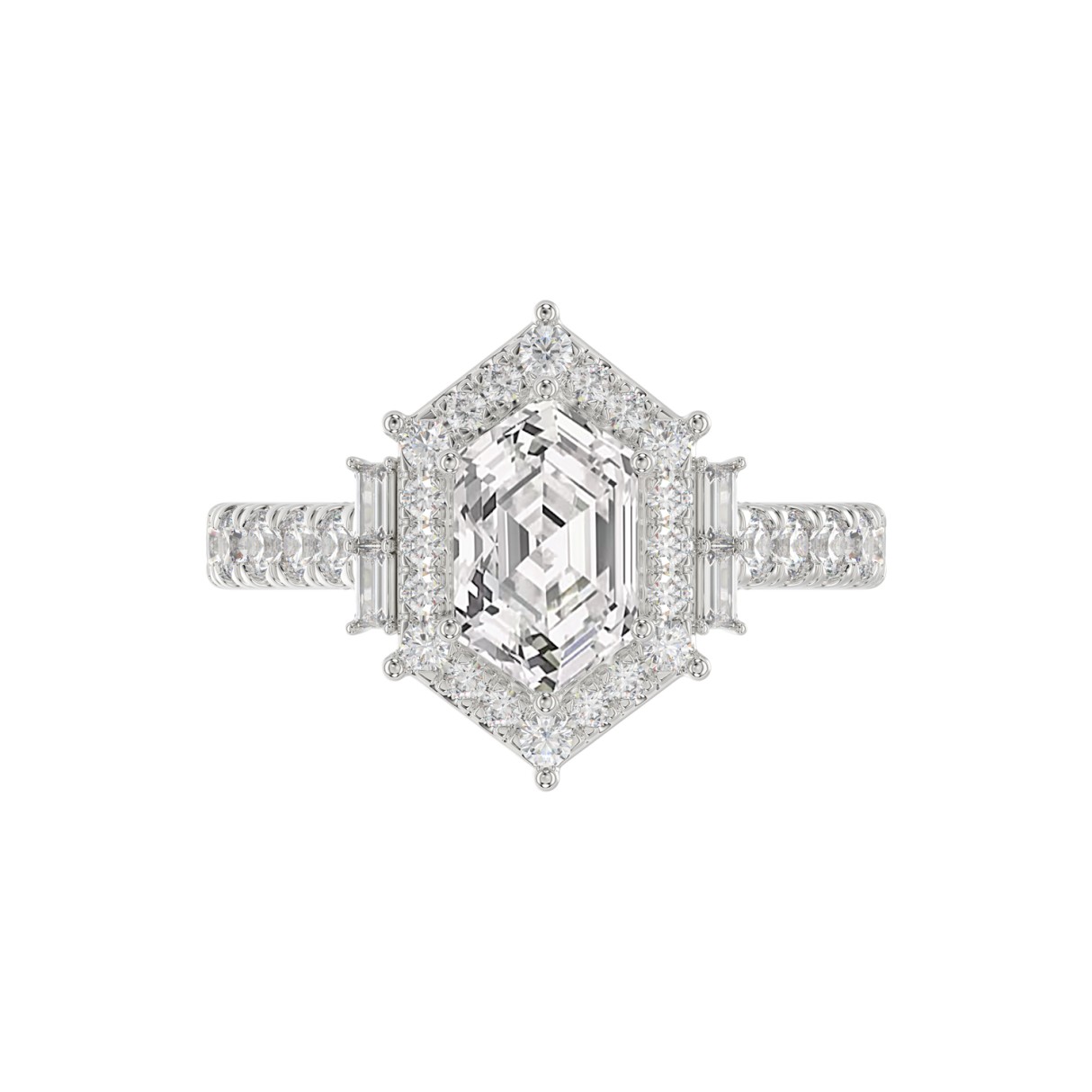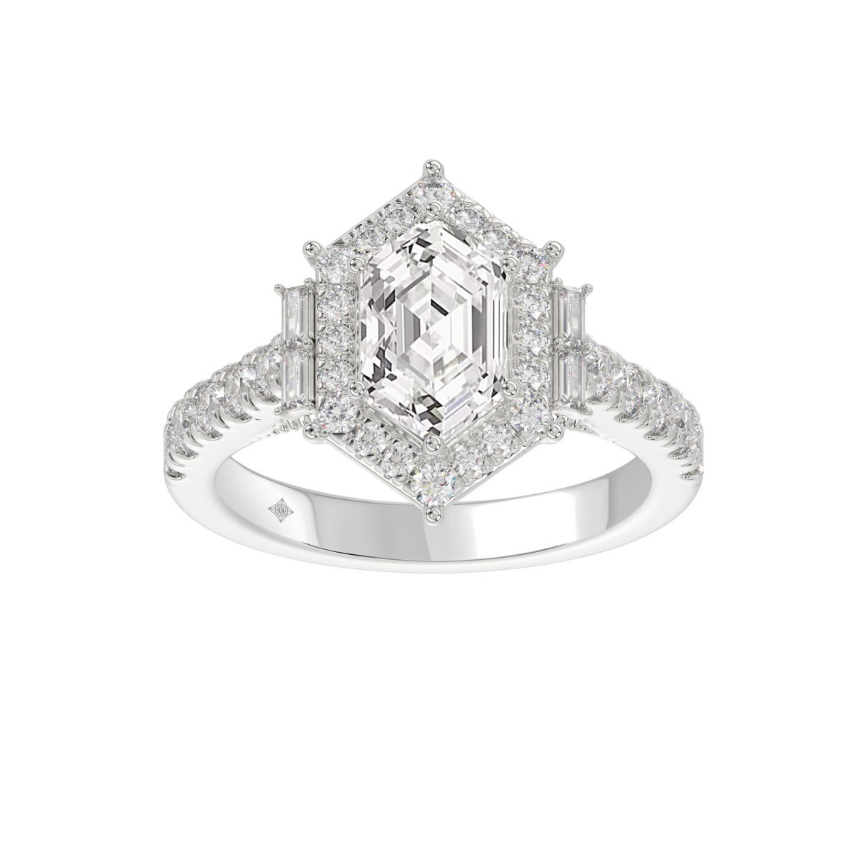 14K WHITE GOLD 2 1/4CT ROUND/BAGUETTE/HEXAGON DIAMOND LADIES RING