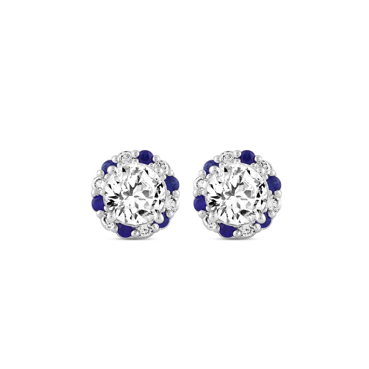 14K WHITE GOLD 2 5/8CT ROUND/ ROUND BLUE SAPPHIRE DIAMOND LADIES EARRING (CENTER STONE ROUND DIAMOND 2CT)