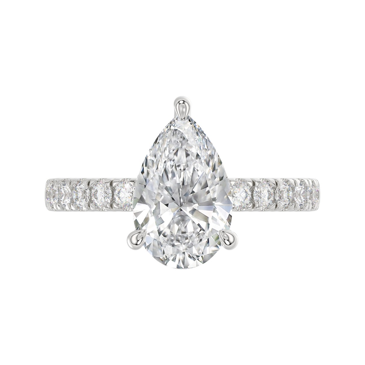 14K WHITE GOLD 3 1/2CT ROUND/PEAR DIAMOND LADIES RING (CENTER STONE PEAR DIAMOND 3CT)