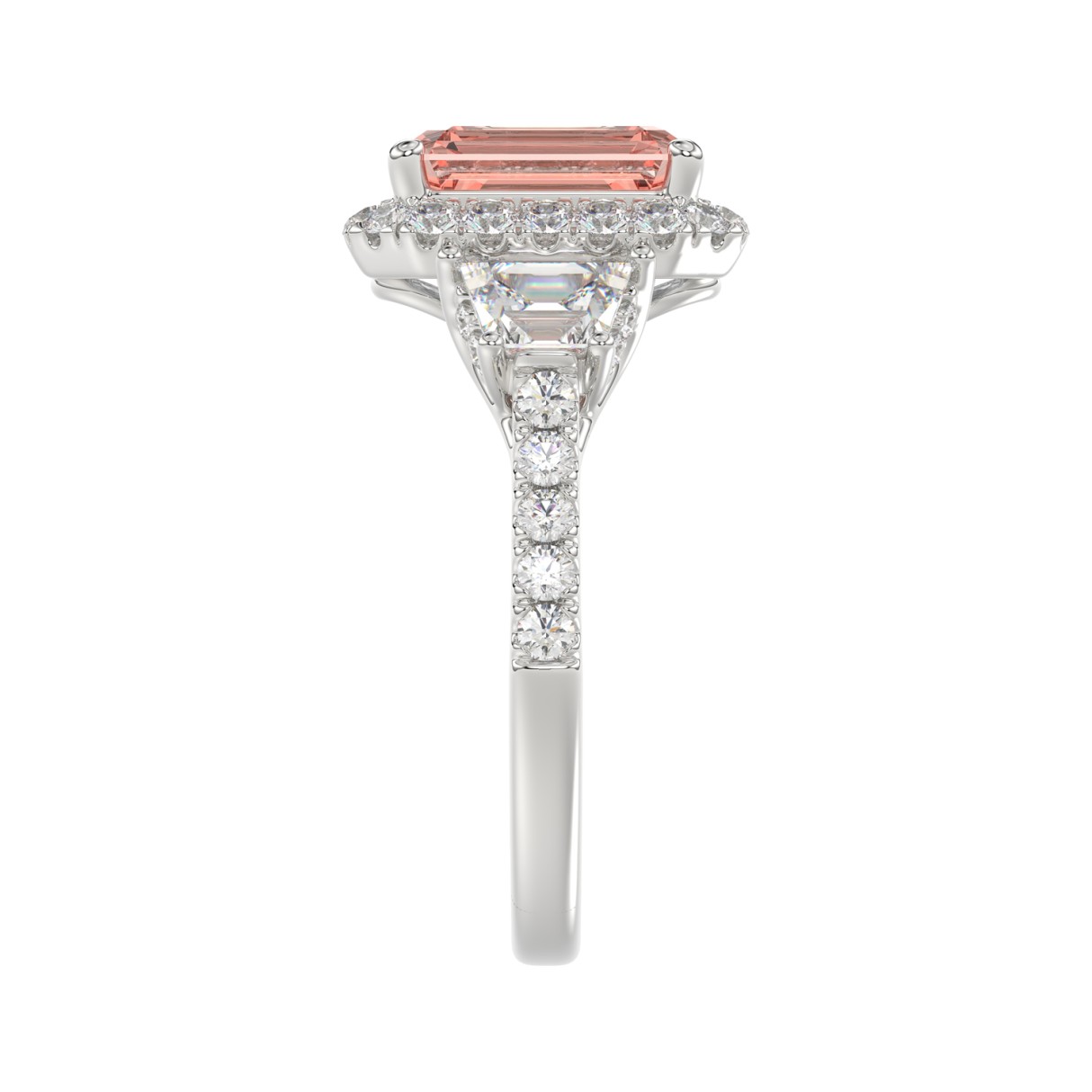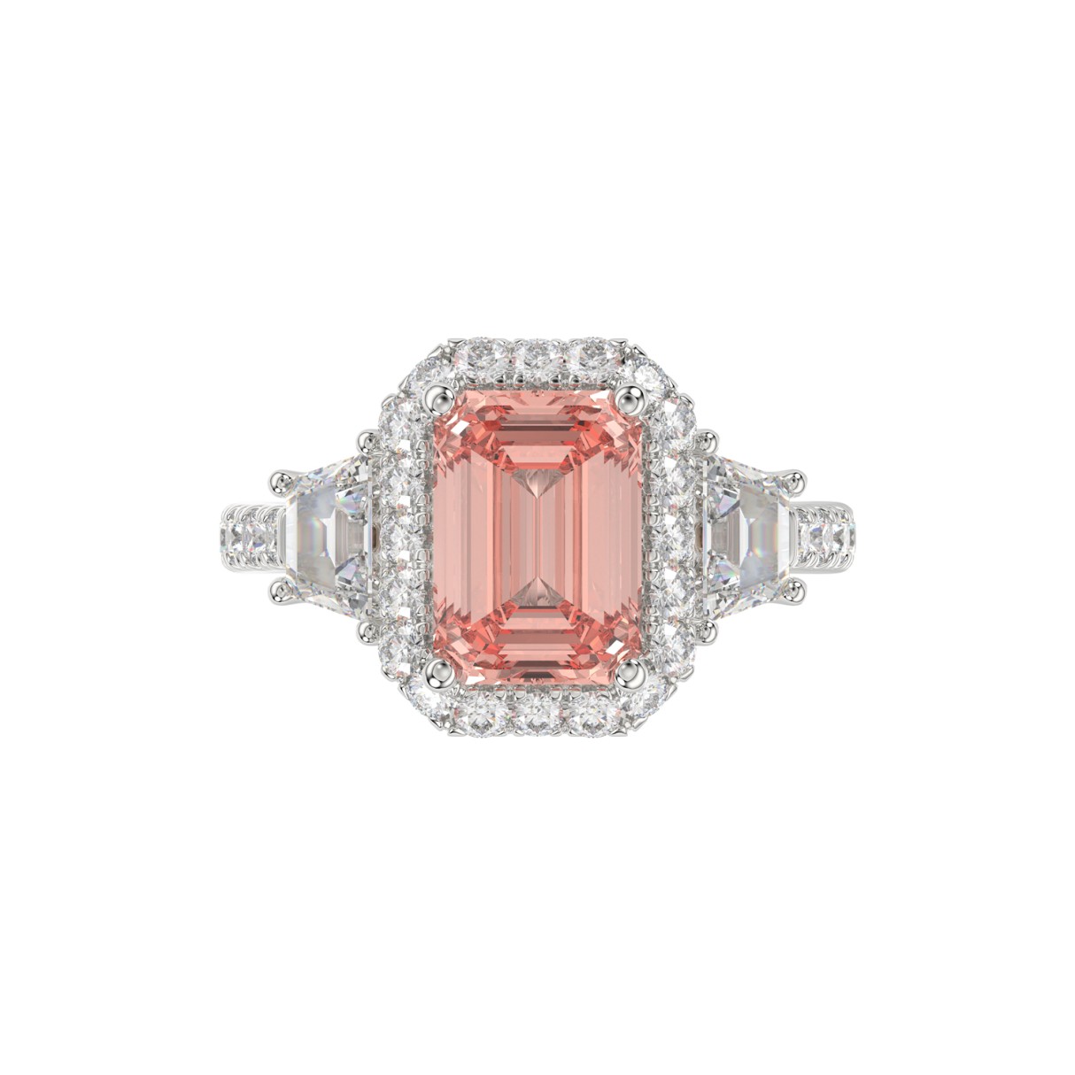 14K WHITE GOLD 4 1/4CT ROUND/RADIANT/TRAPEZOID DIAMOND LADIES RING (CENTER STONE PINK RADIANT DIAMOND 3.00CT)