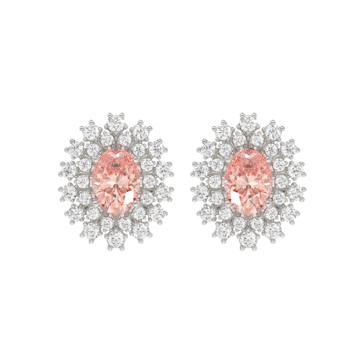 14K WHITE GOLD CRAFTED WITH 18K YELLOW GOLD BACK PLATE 1 1/2CT ROUND/PINK OVAL DIAMOND LADIES EARRINGS