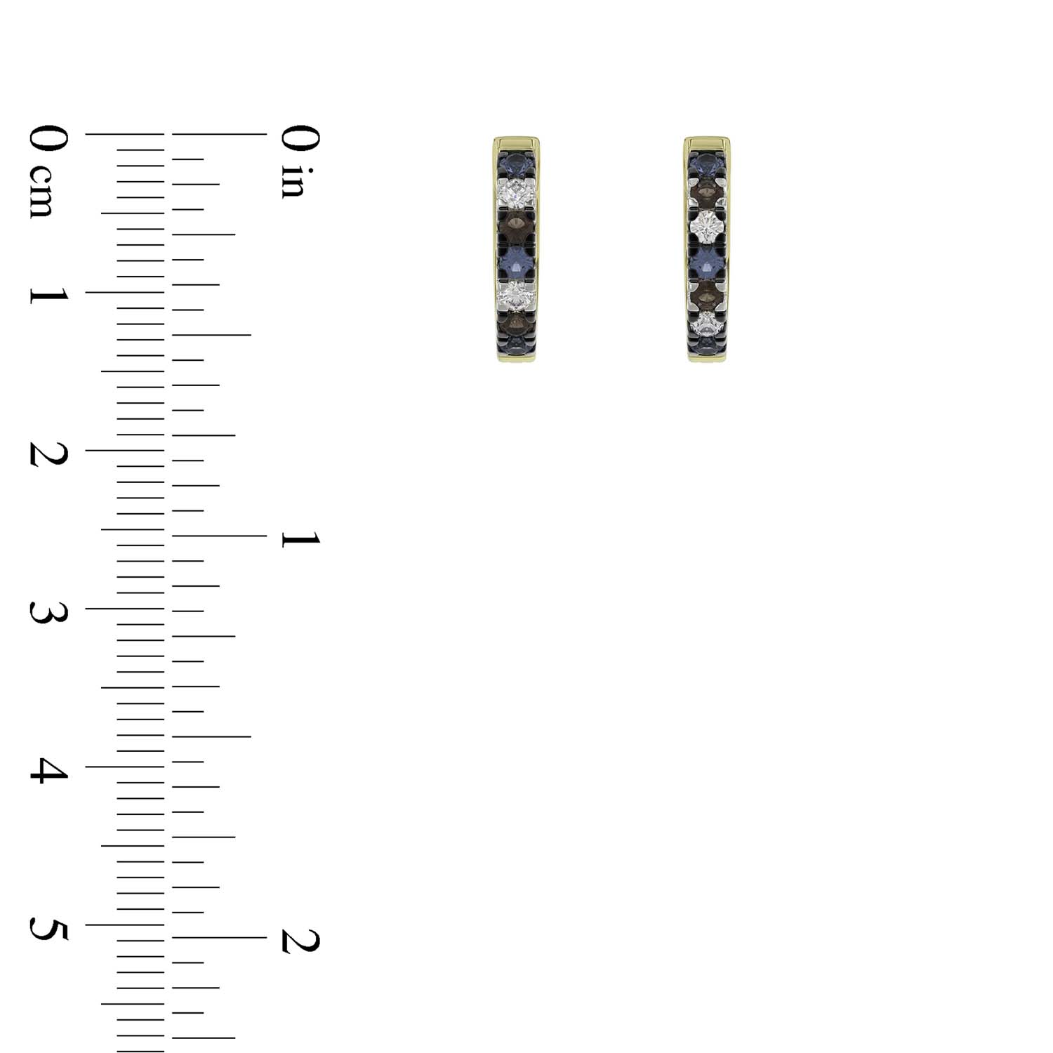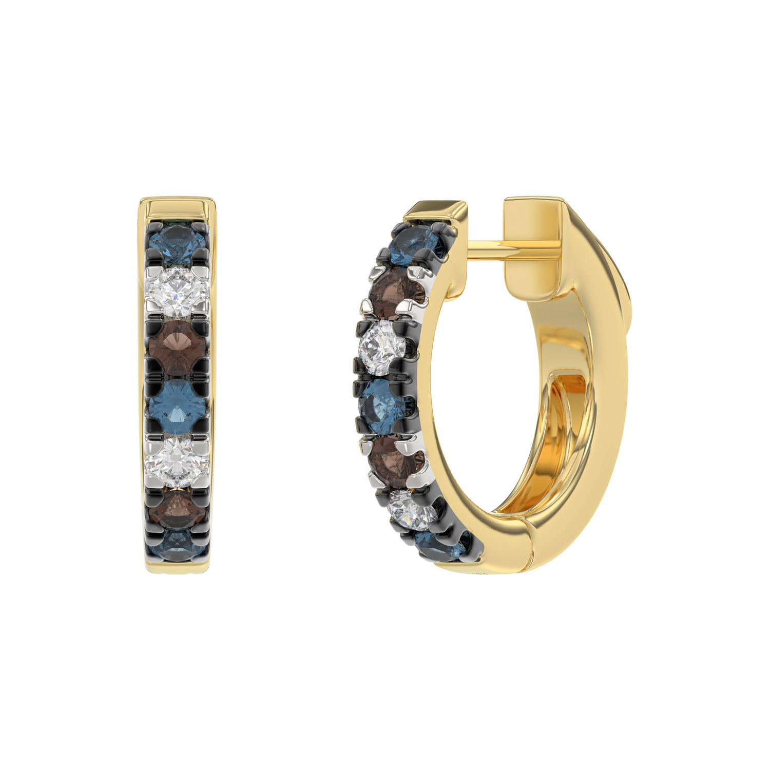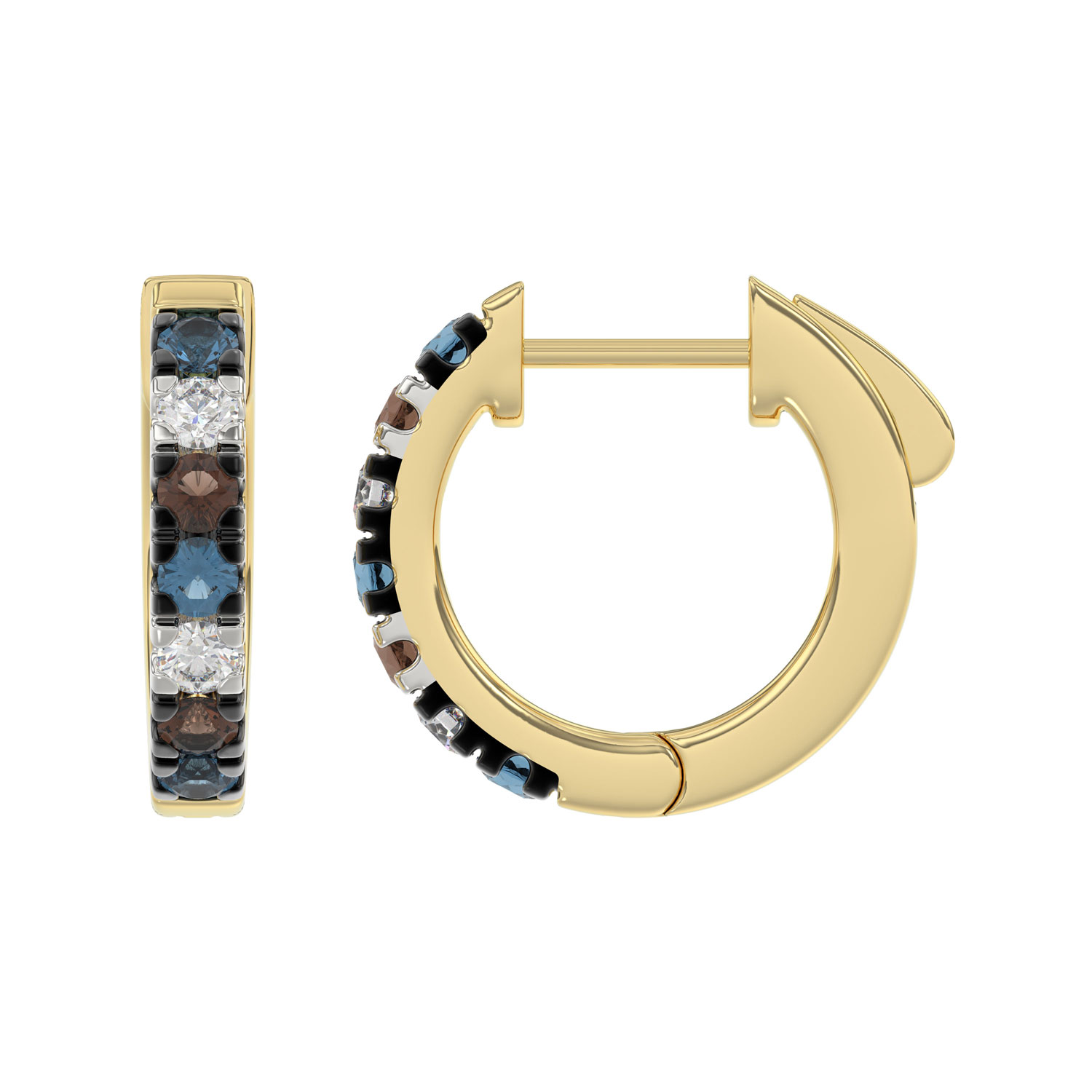 14K Yellow Gold 0.50CT Multi-Color Diamond Huggie Hoop Earrings Round Cut Blue, White Round &Dark Brown Diamonds
