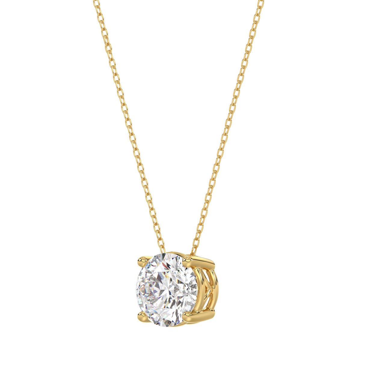 14K YELLOW GOLD 1.00CT ROUND DIAMOND LADIES SOLITAIRE PENDANT WITH UNDER-PASS CHAIN (CENTER STONE ROUND DIAMOND 1CT)