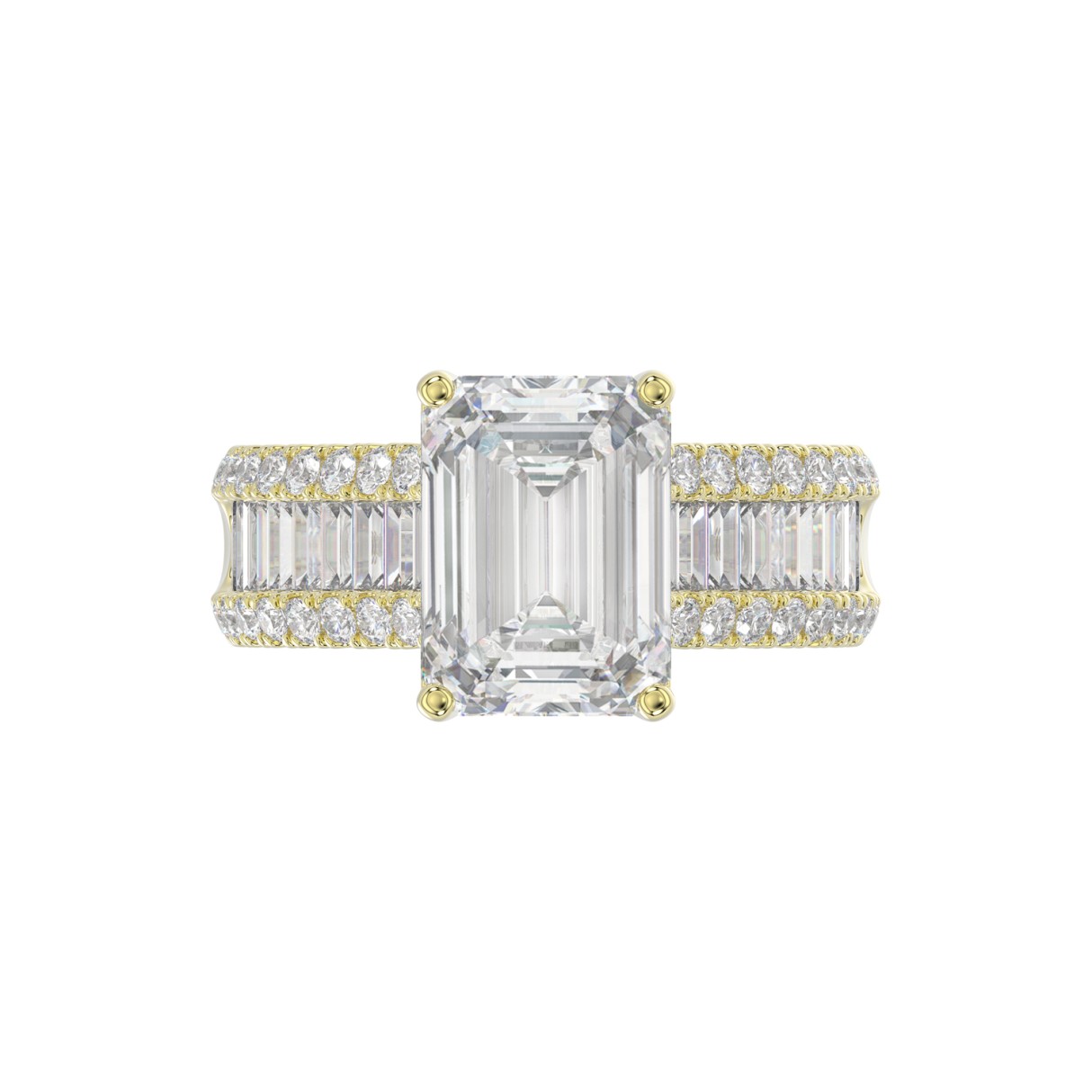 14K YELLOW GOLD 1 1/4CT ROUND/BAGUETTE/RADIANT DIAMOND LADIES RING (CENTER STONE RADIANT DIAMOND 4CT)