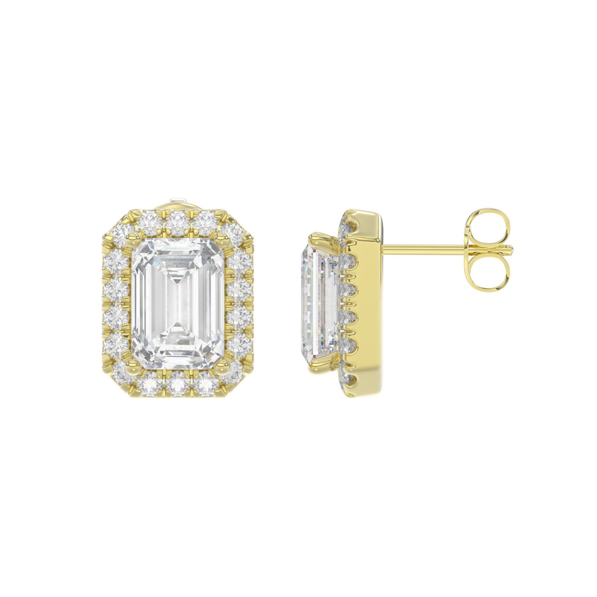14K YELLOW GOLD 2 1/3CT ROUND/EMERALD DIAMOND LADIES EARRINGS (CENTER STONE EMERALD DIAMOND 1CT)