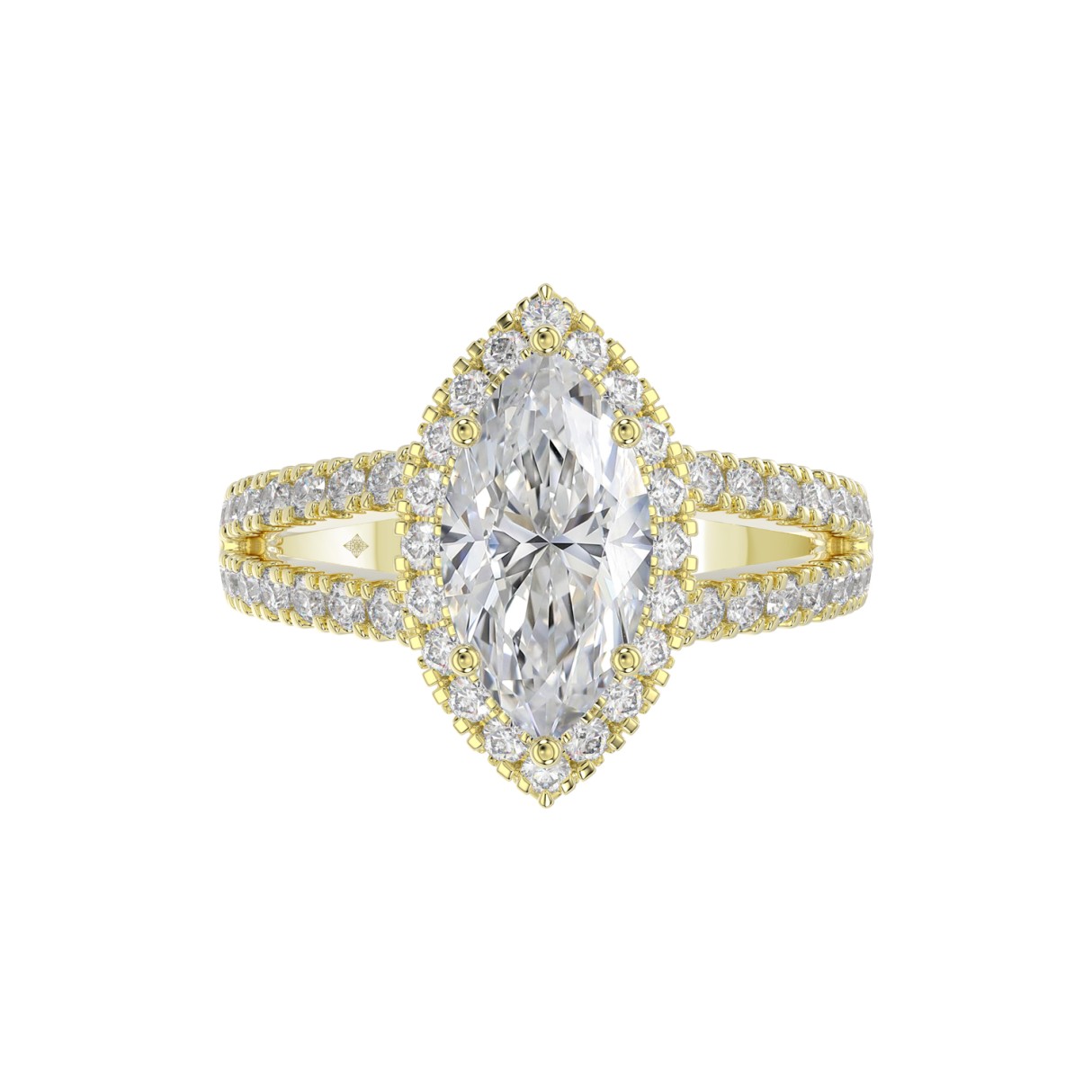 14K YELLOW GOLD 3.00CT ROUND/MARQUISE DIAMOND LADIES RING (CENTER STONE MARQUISE DIAMOND 2CT)