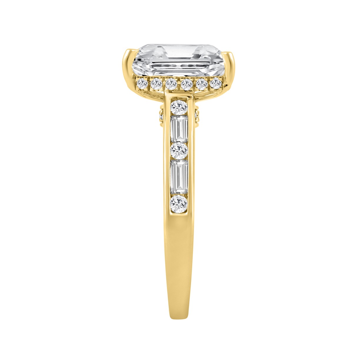 14K YELLOW GOLD 3 1/2CT ROUND/BAGUETTE/RADIANT DIAMOND LADIES RING