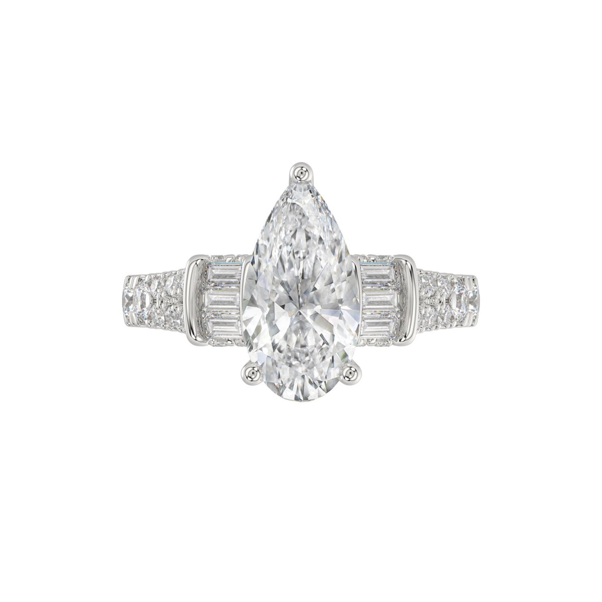 21K PLATINUM LADIES RING 2 3/4CT ROUND/PEAR/BAGUETTE DIAMOND (CENTER STONE PEAR DIAMOND 2CT)