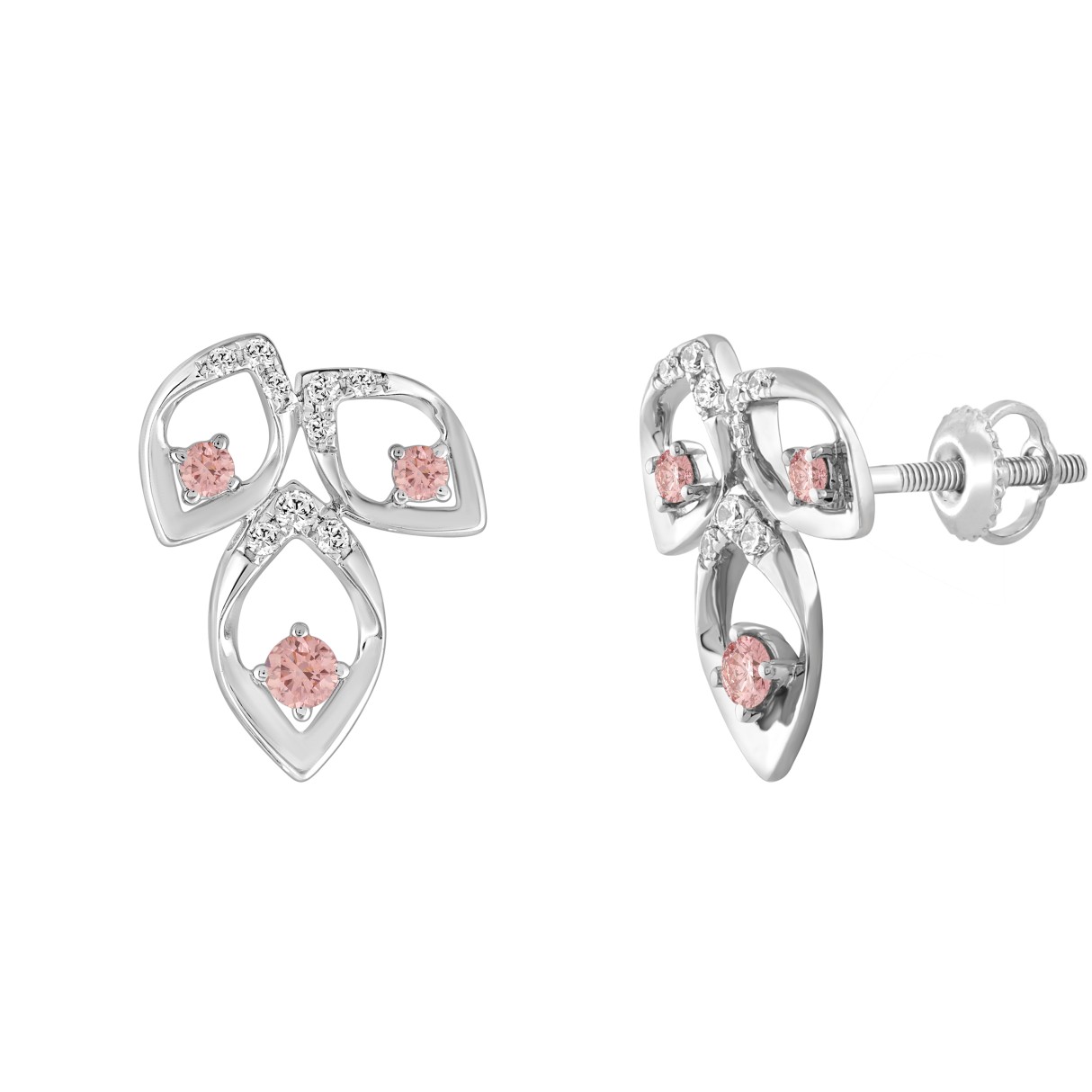 ETERNAL BLUSH COLLECTION LADIES EARRINGS 1/2CT ROUND DIAMOND 14K WHITE GOLD (CENTER STONE PINK ROUND DIAMOND 1/3CT)