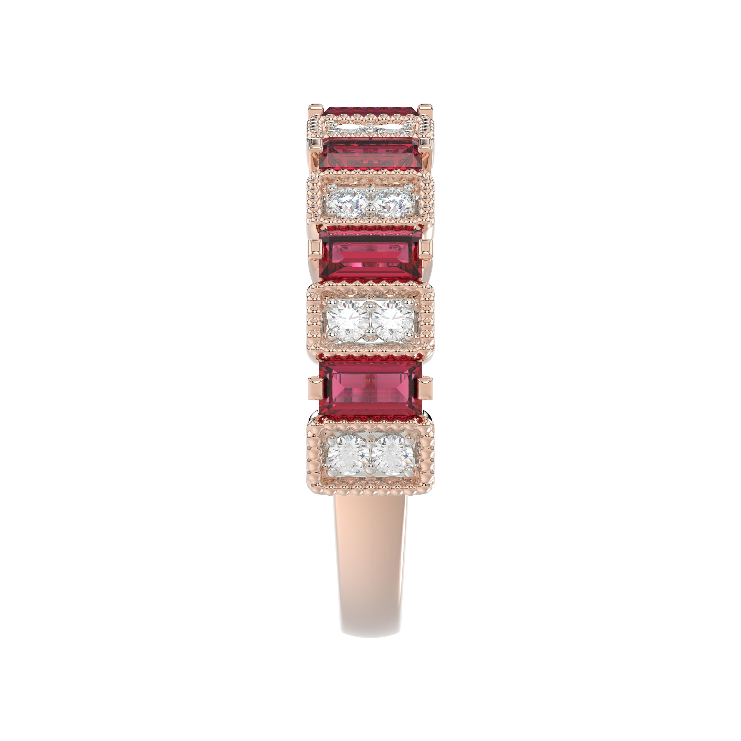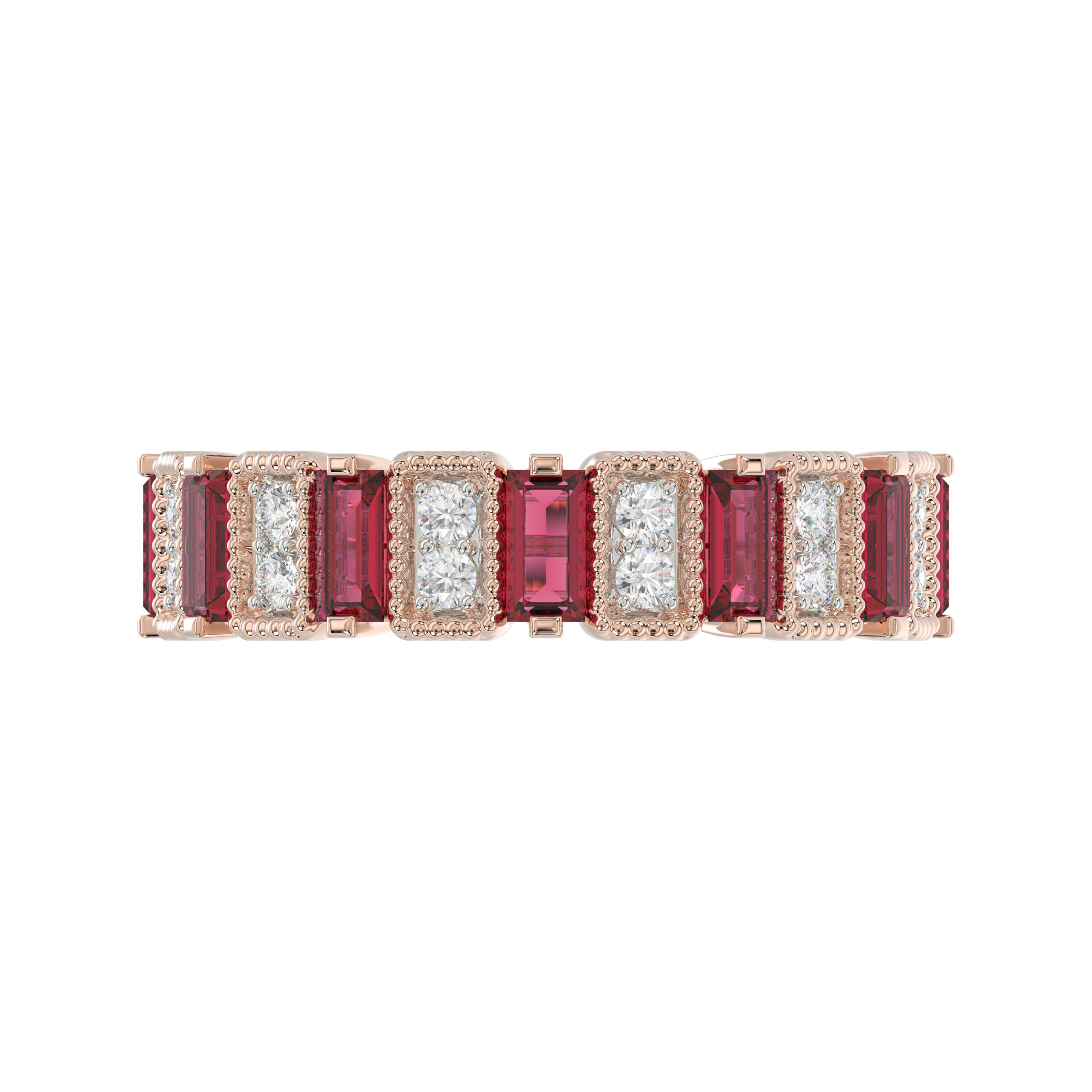 LADIES BAND 1.30CT ROUND/BAGUETTE RUBY DIAMOND 14K ROSE GOLD