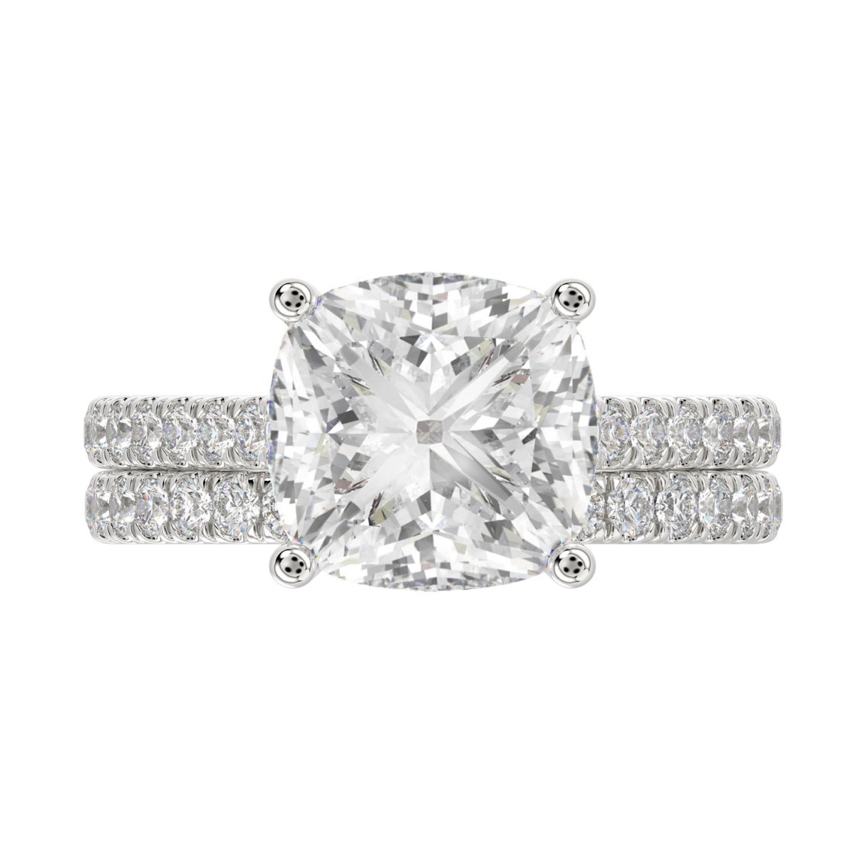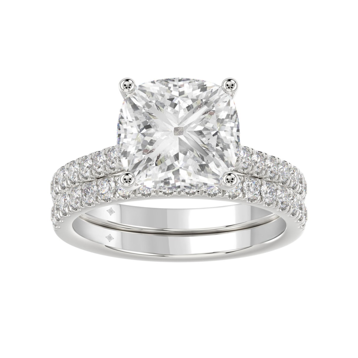 LADIES BRIDAL SET 3 1/2CT ROUND/CUSHION DIAMOND 14K WHITE GOLD (CENTER STONE CUSHION DIAMOND 4CT )