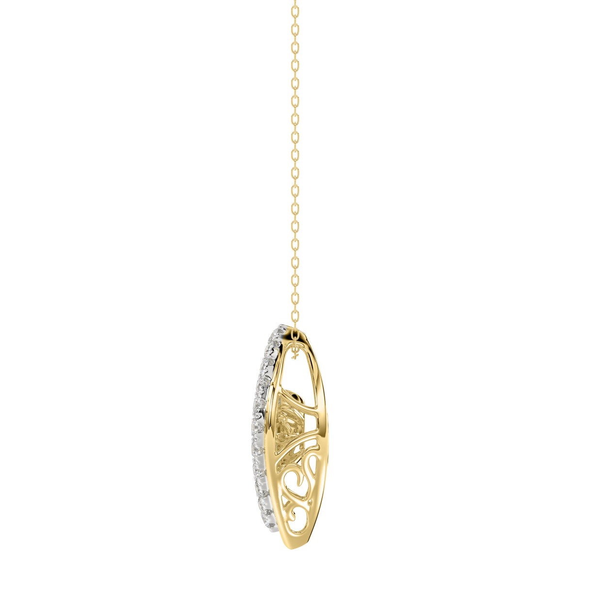 LADIES DANCING DIAMOND PENDANT WITH CHAIN 3/4CT ROUND/PEAR DIAMOND 14K YELLOW GOLD (CENTER STONE PEAR DIAMOND 1/2CT)